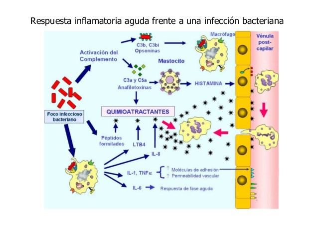 tiempo, se observa la liberación de sustancias que atraen leucocitos