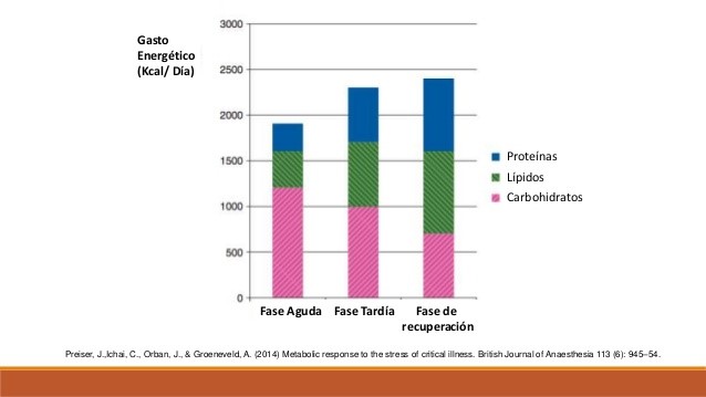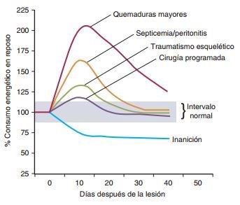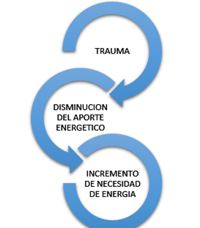 Larespuesta al trauma estÔ dada por un elevado gasto metabólico y un gran catabolismo proteico, que trae consigo el deterioro del estado nutricional e inmunitario, con un incremento de la morbilidad y un mayor riesgo de muerte