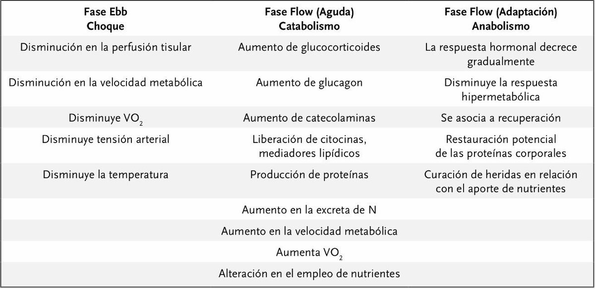 La manifestación mÔs significativa de esta fase es el persistente balance negativo de nitrógeno, como expresión directa de la degradación proteica corporal. Es la fase de hipermetabolismo o hipercatabolismo, la de resurgimiento de la vitalidad.